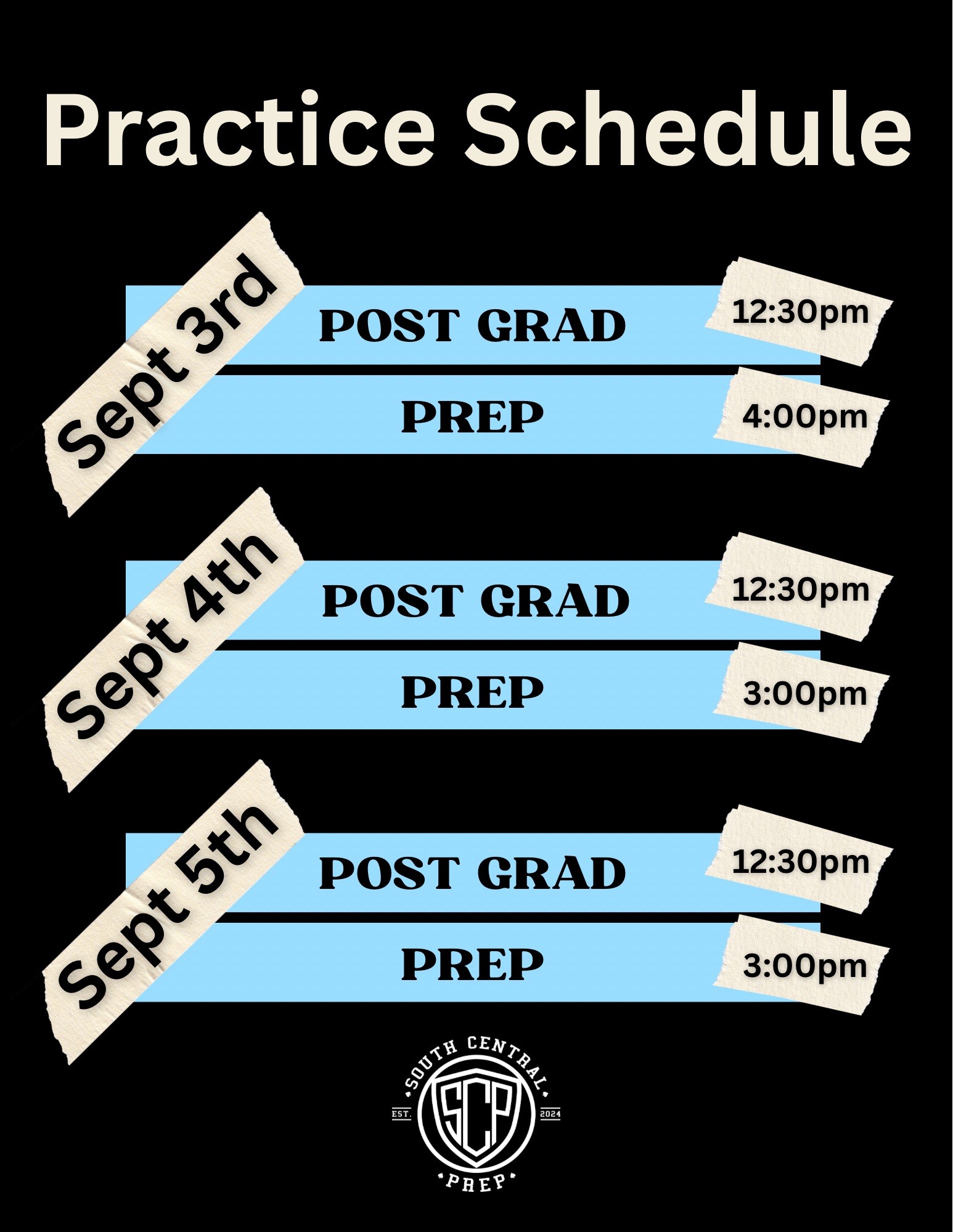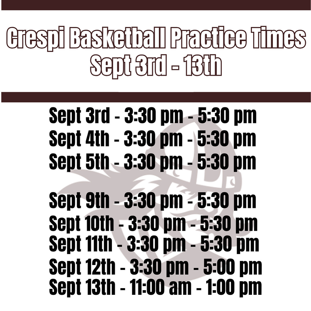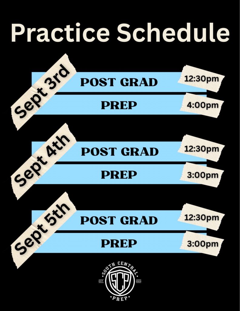 Fall practice times: 6pm-8pm Monday thru Friday