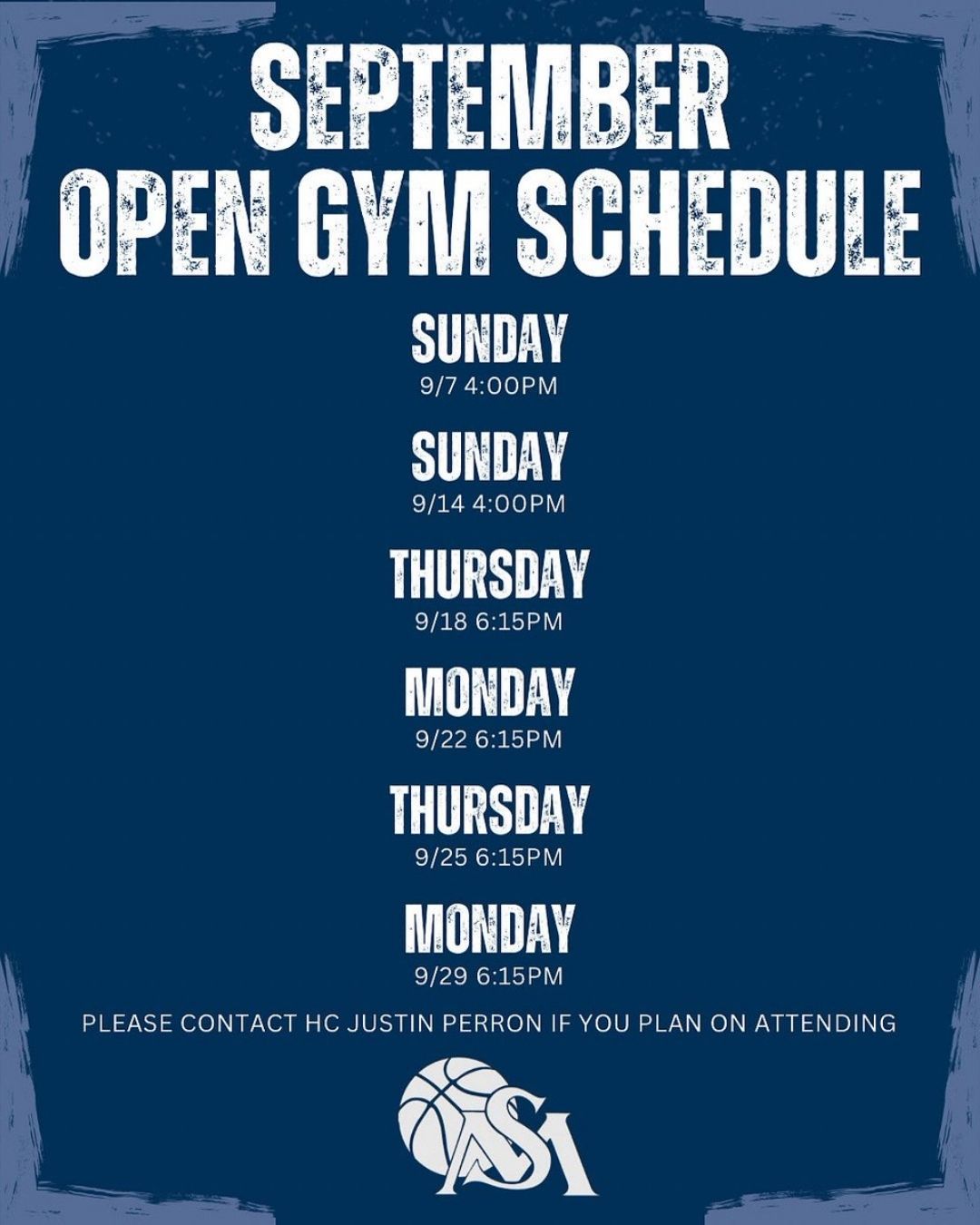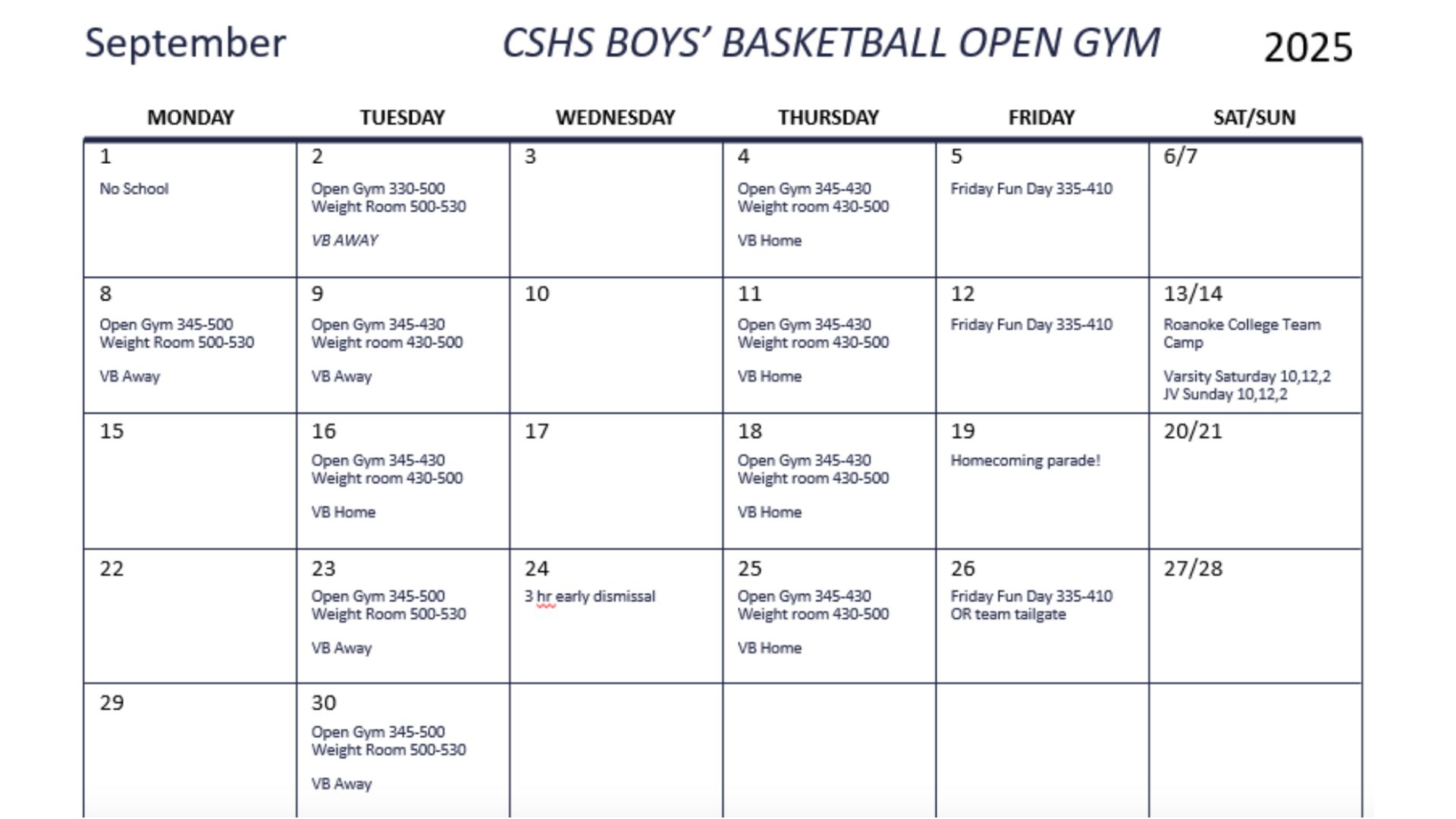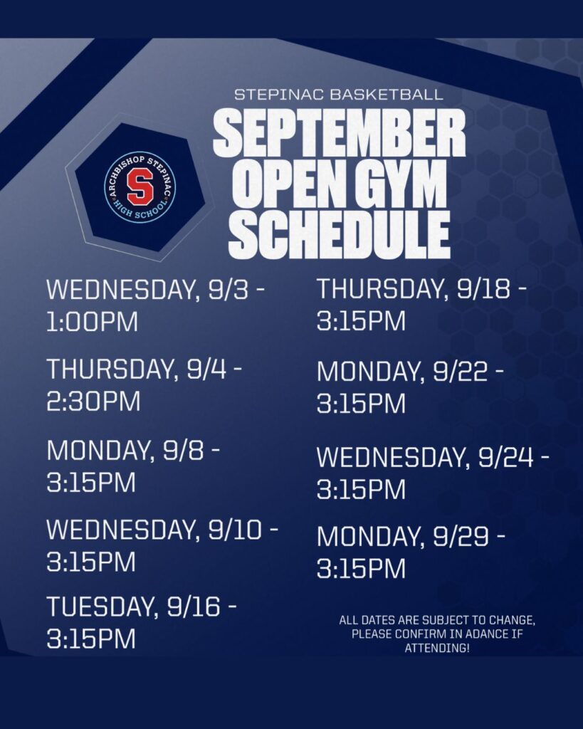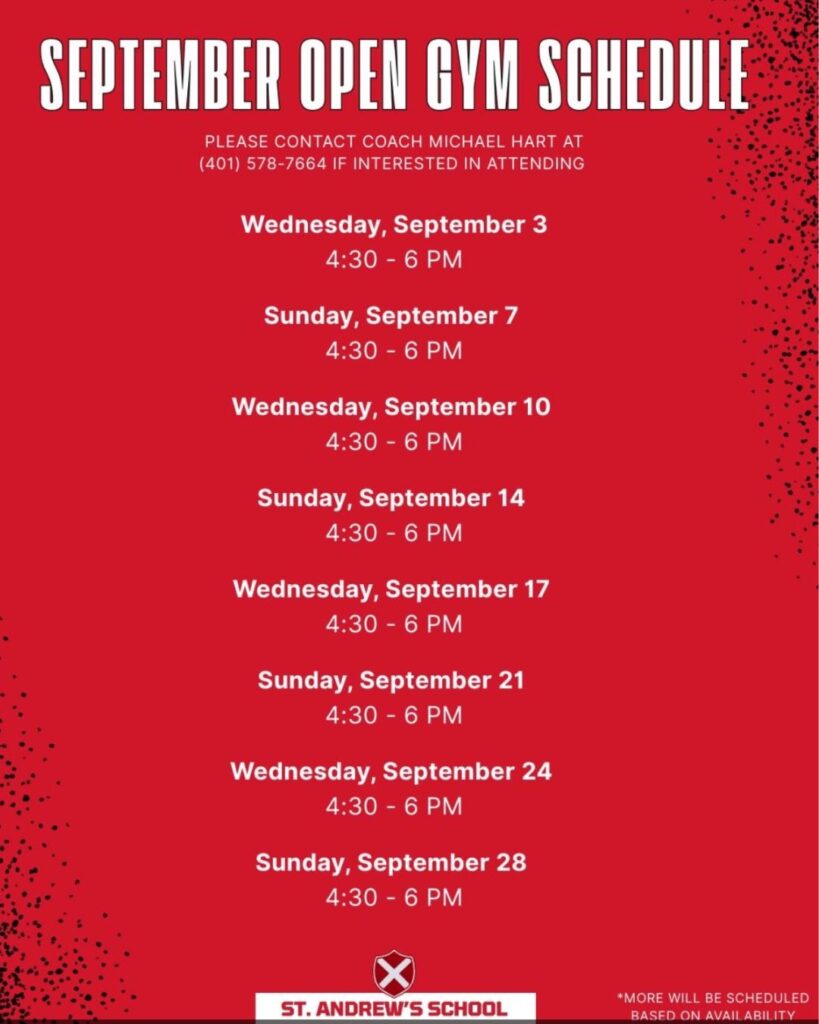 9/10 UPDATE: 2025 Fall Open Gym Schedule