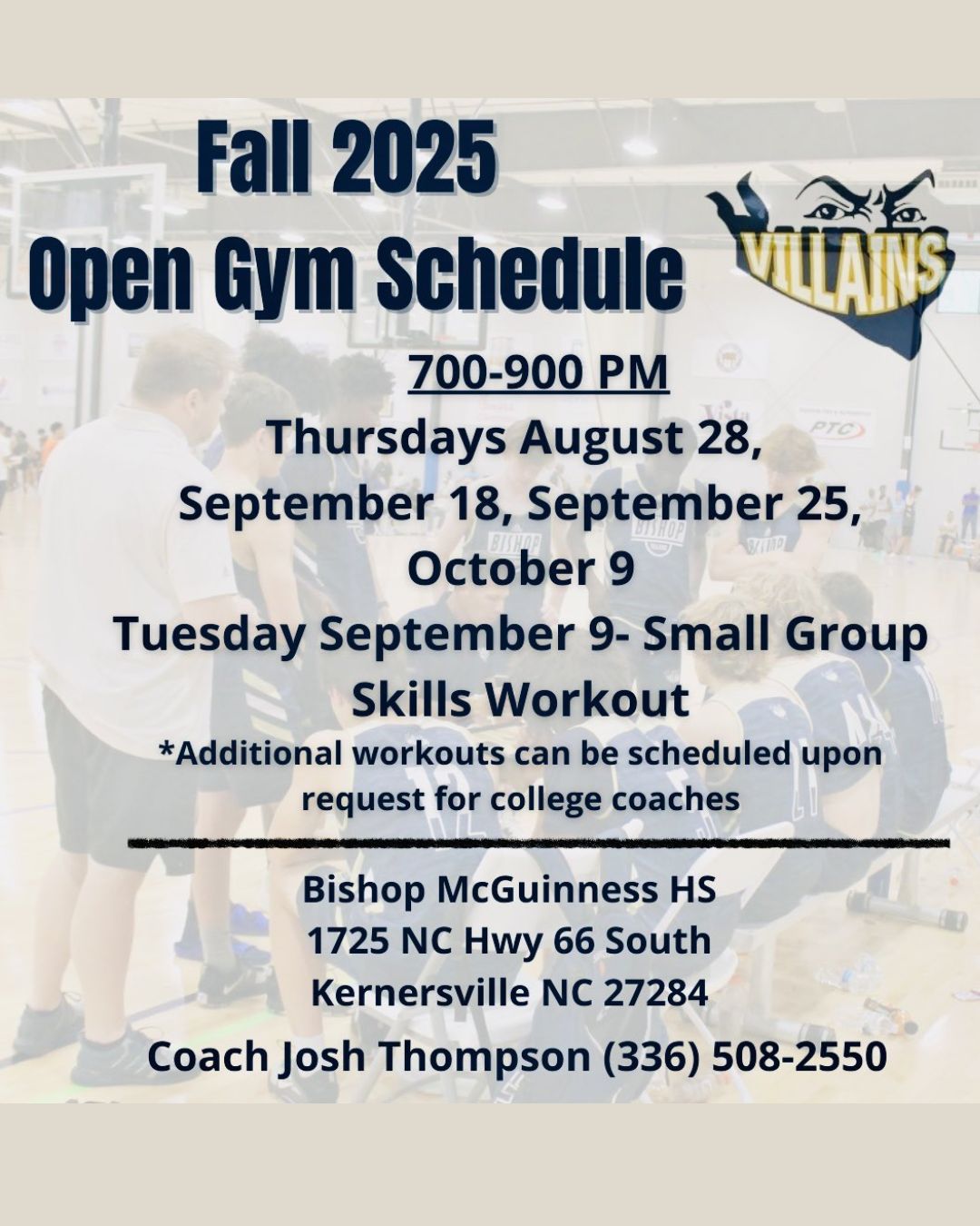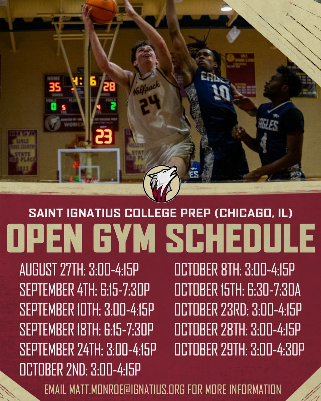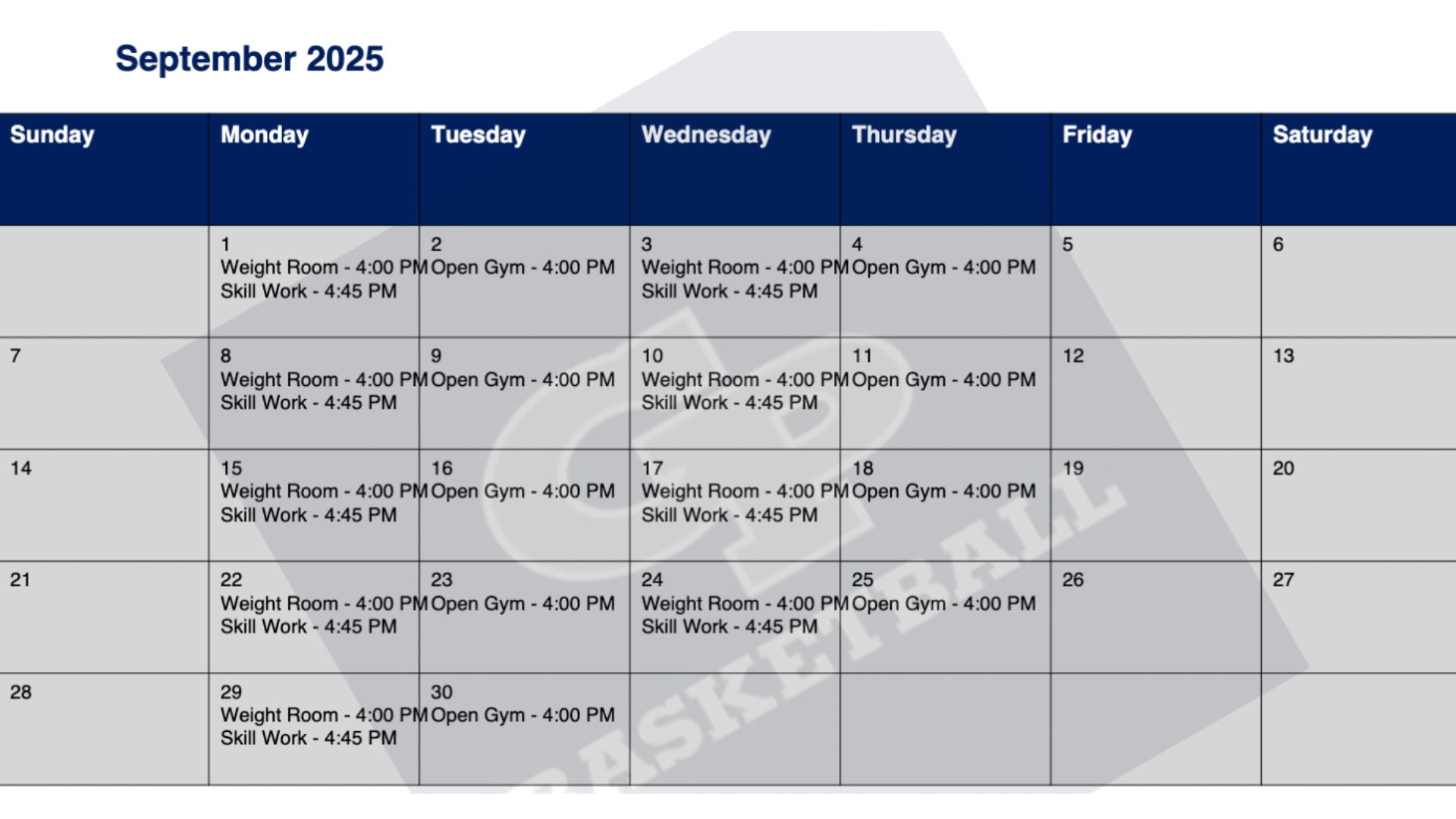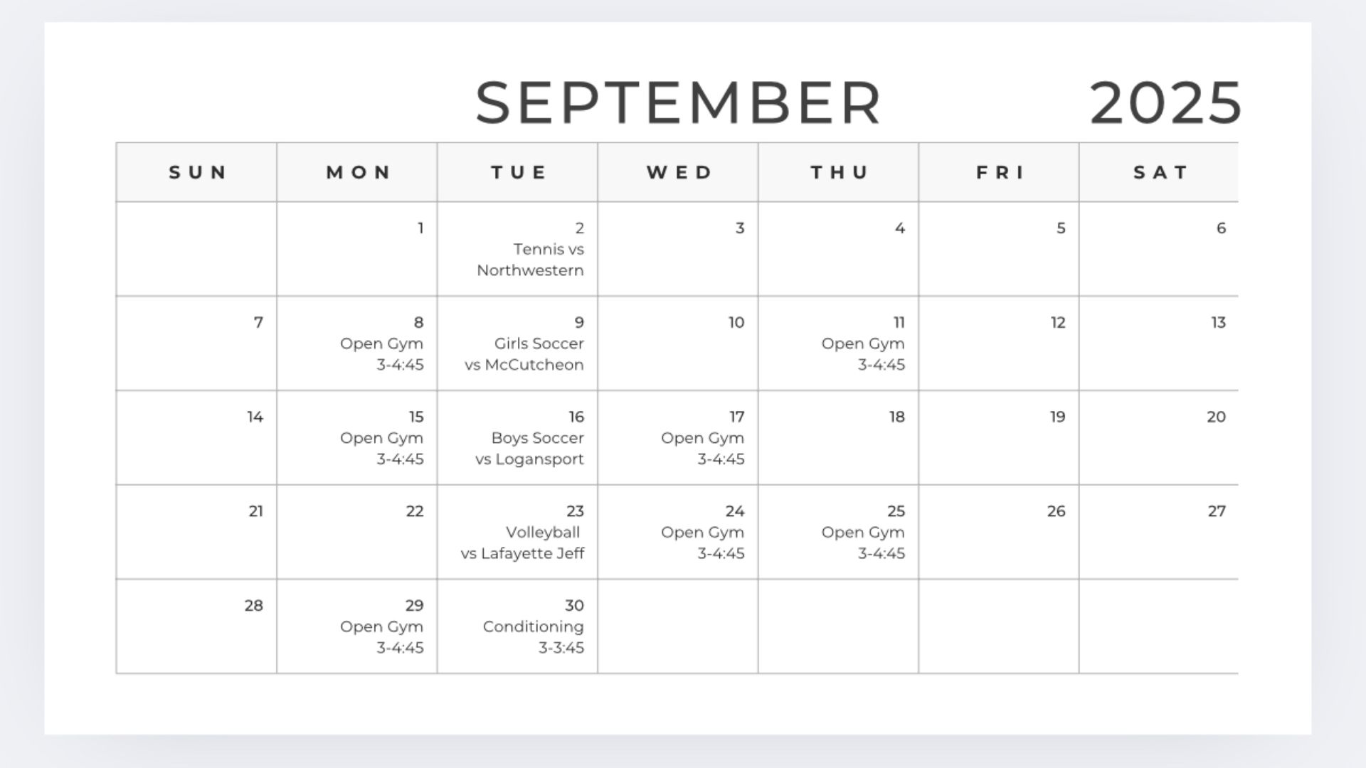 9/10 UPDATE: 2025 Fall Open Gym Schedule