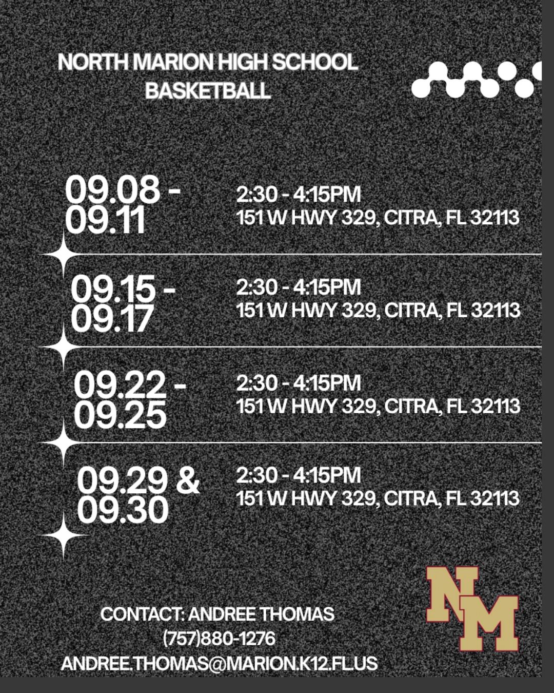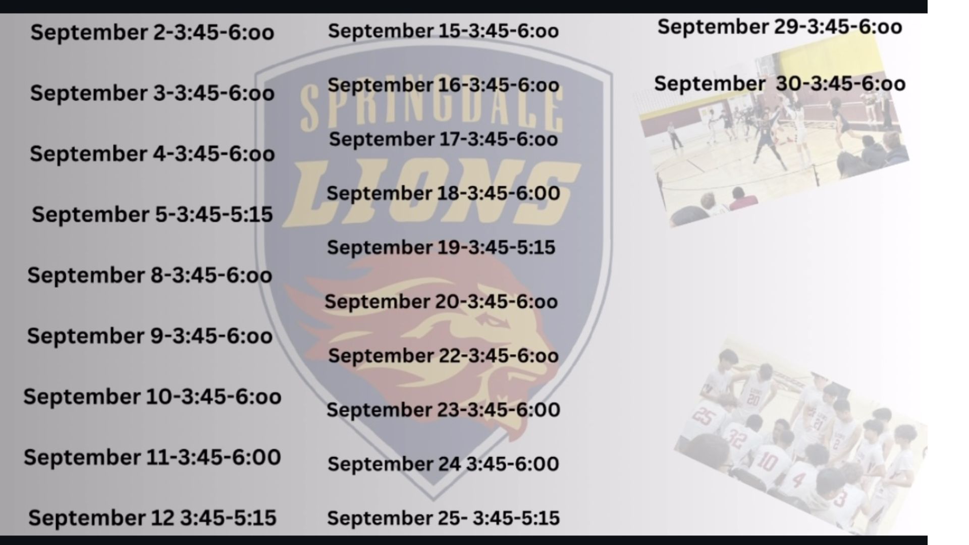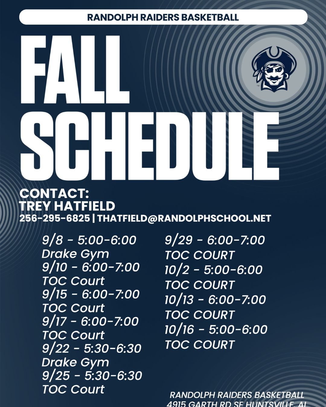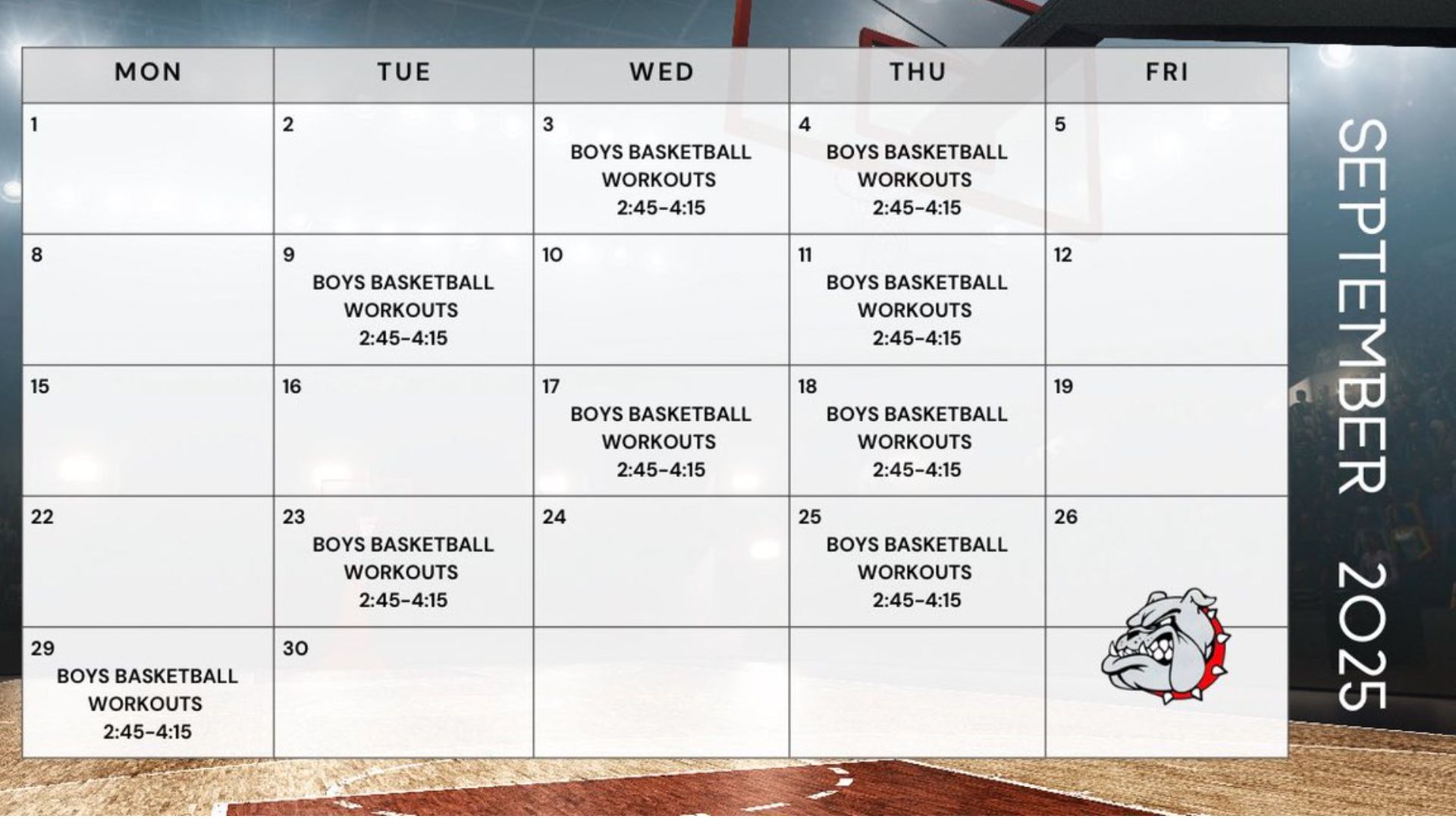 9/10 UPDATE: 2025 Fall Open Gym Schedule