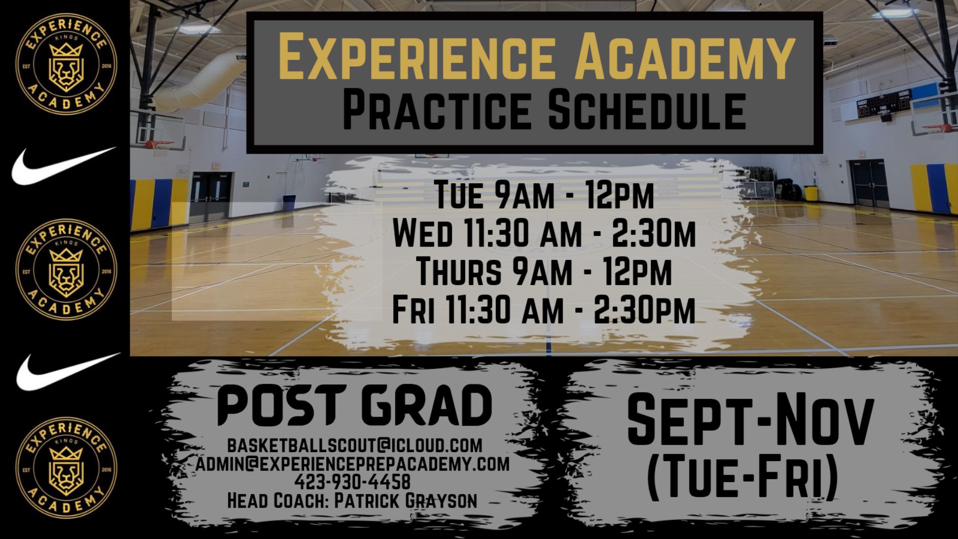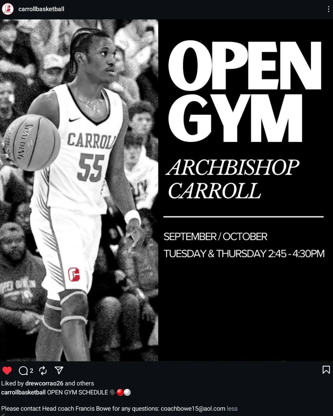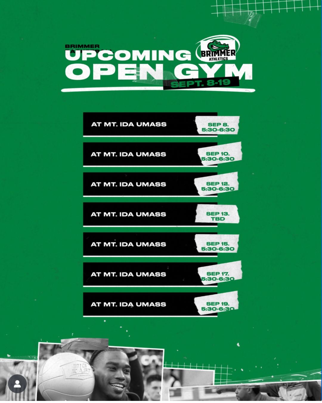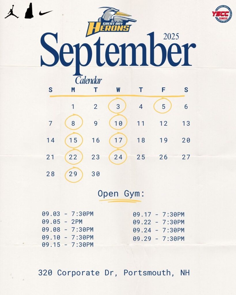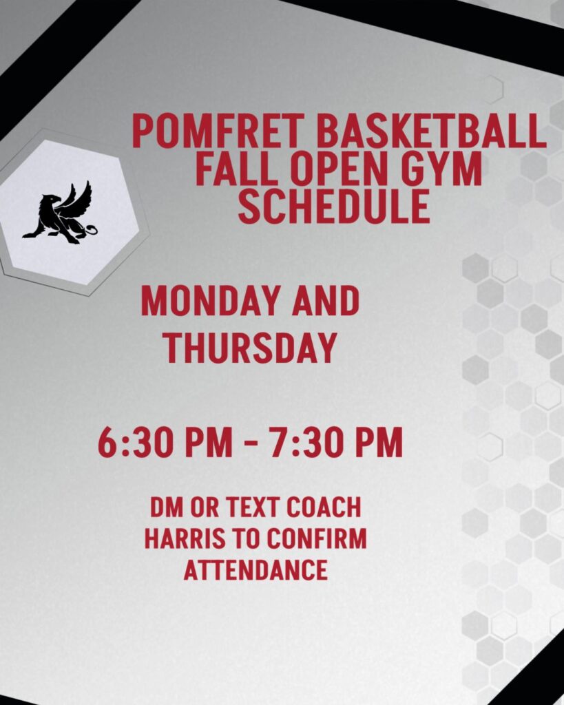 Open gym schedule: Mondays and Thursdays at 5 PM. College coaches should check in with Coach Karpowicz at 508-479-3522 to confirm.