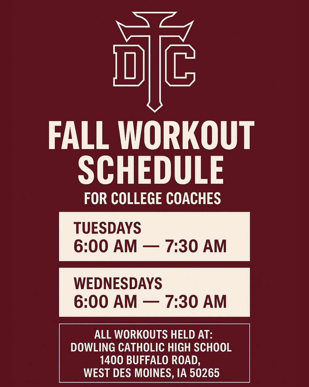 Complete fall workout schedule can be found HERE.