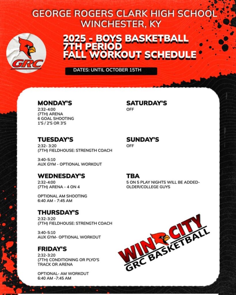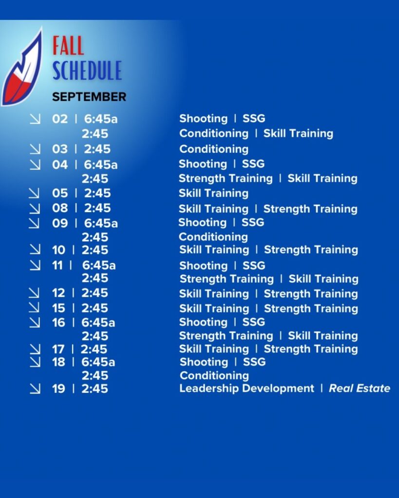 Complete workout schedule and player information can be found HERE. Workouts start 9/2 and run throughout the fall.