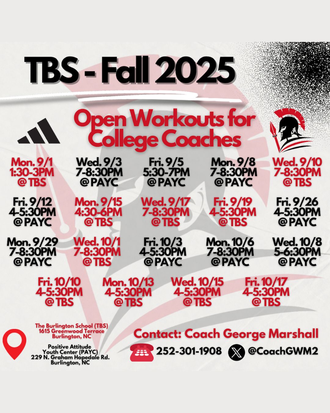 Any other days coaches want to come please contact Coach Zito.
