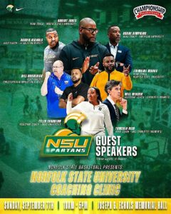 Welcome to the 2nd Annual Norfolk State Coaches Clinic happening at Norfolk State University on September 7, 2025 at 10:00 AM (Eastern Time)! 🏀🎉 Join us for a day filled with insightful sessions led by experienced coaches. Whether you’re a beginner or seasoned pro, this event is perfect for anyone passionate about coaching. Get ready to enhance your skills, connect with fellow coaches, and be inspired! Don’t miss out on this fantastic opportunity to grow and learn. |
